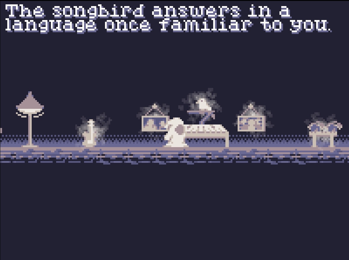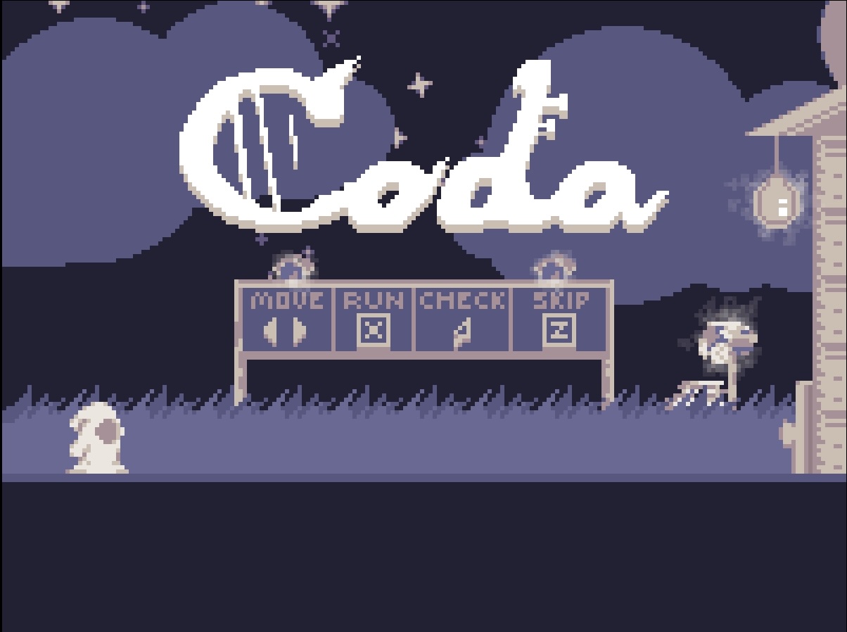 Coda is a narrative-focused side-scroller game centering a musician seeking to resolve their past worries and last responsibilities, including their beloved pet, before finally passing into the Great Harmony.